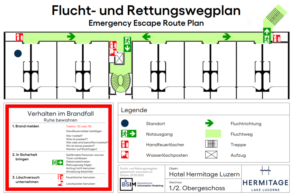- Einfach lesbare Fluchtwegpläne erhöhen die Sicherheit